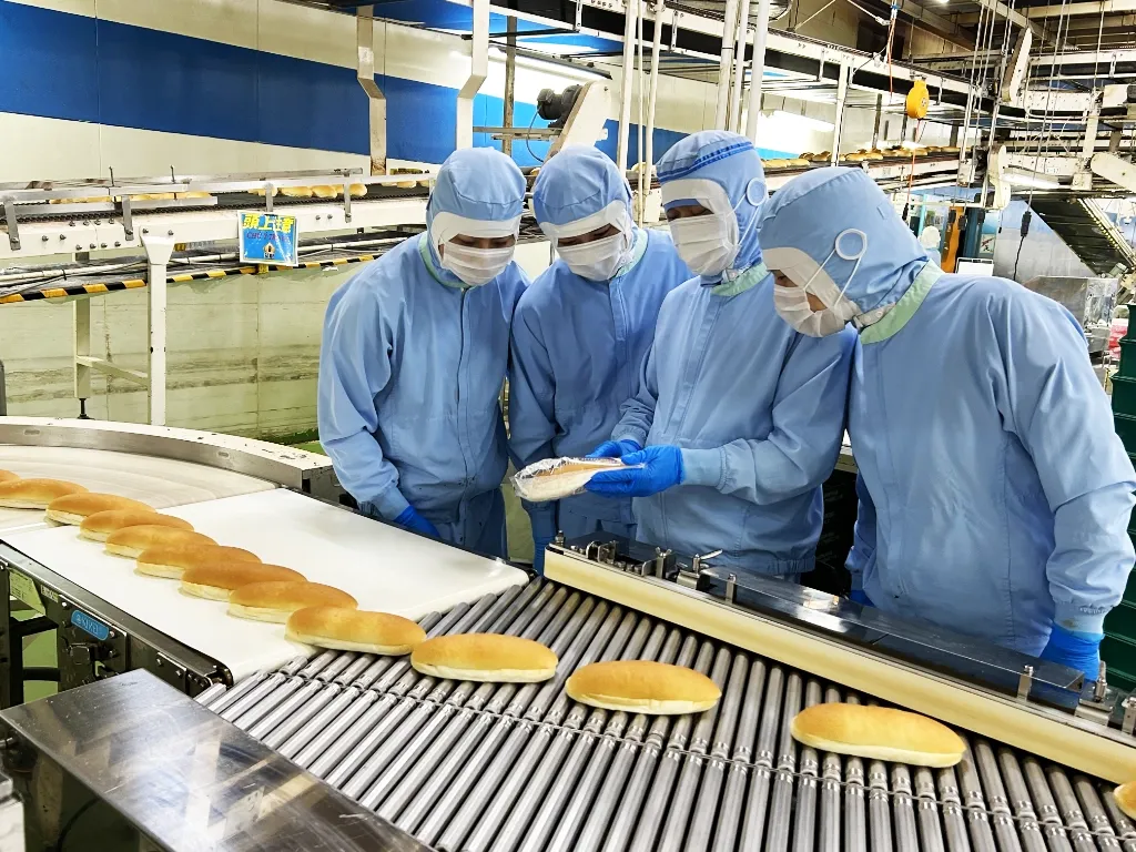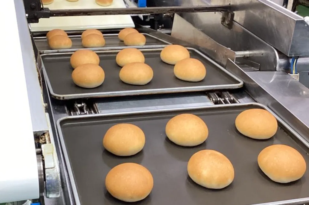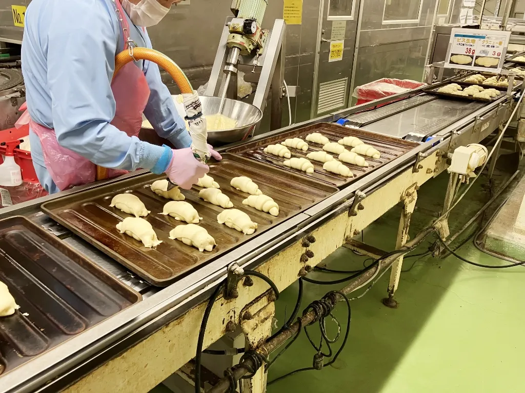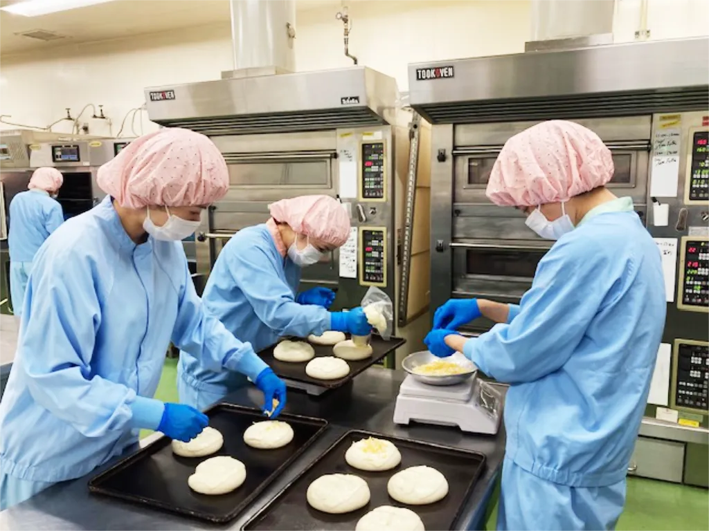 焼成部門では、冷凍パン生地や洋菓子の焼成・トッピング・包装を担当し、24 時間 365 日稼働体制で主にコンビニエンスストア向けの商品を製造しています。品質にこだわり、焼き上がりや仕上げを丁寧に行い、安心・安全で美味しいパンを提供することで、お客様に喜ばれる商品づくりを目指しています。