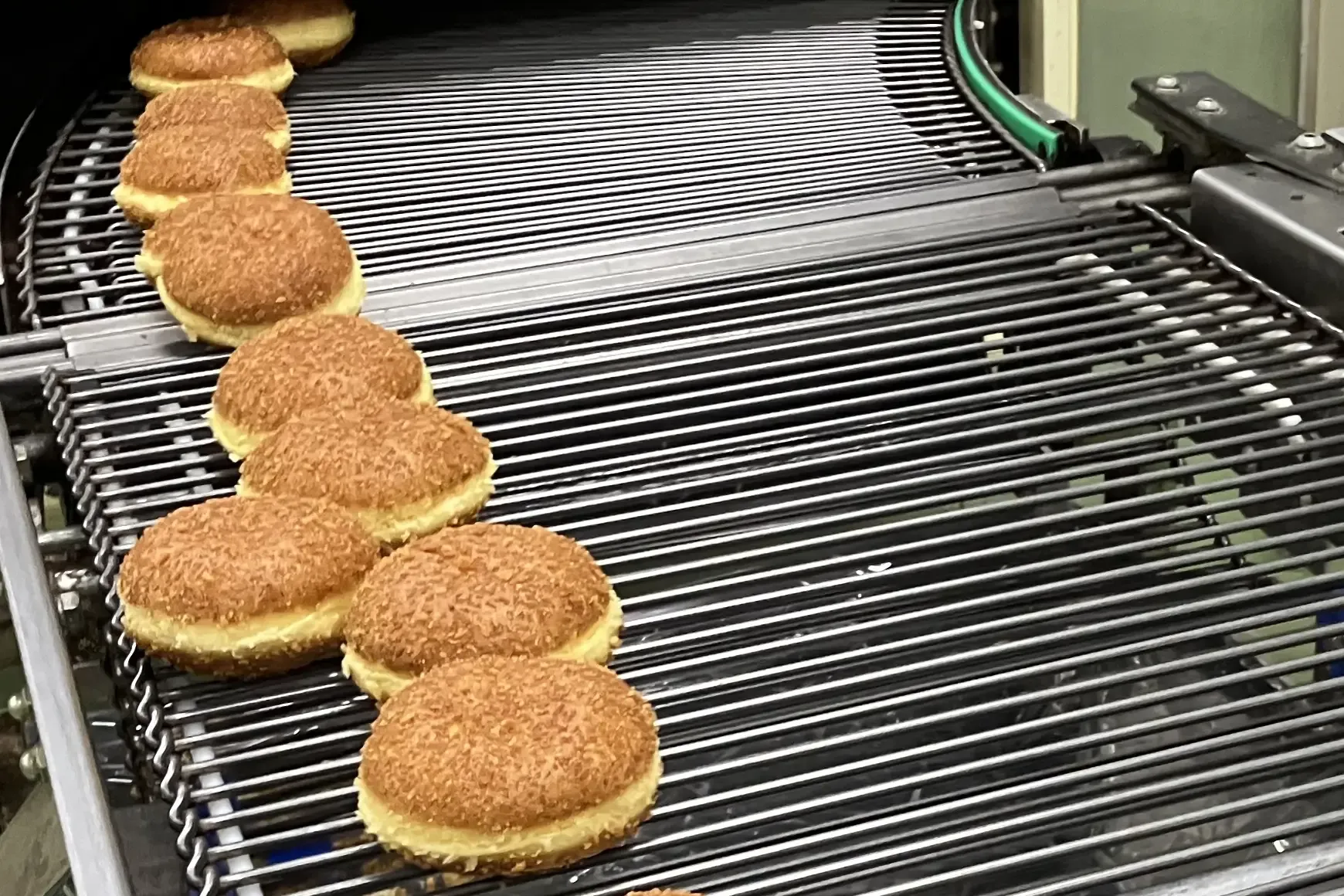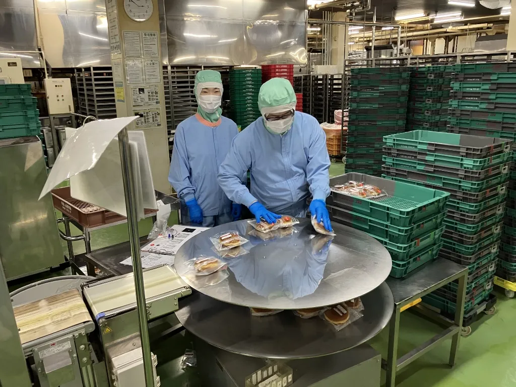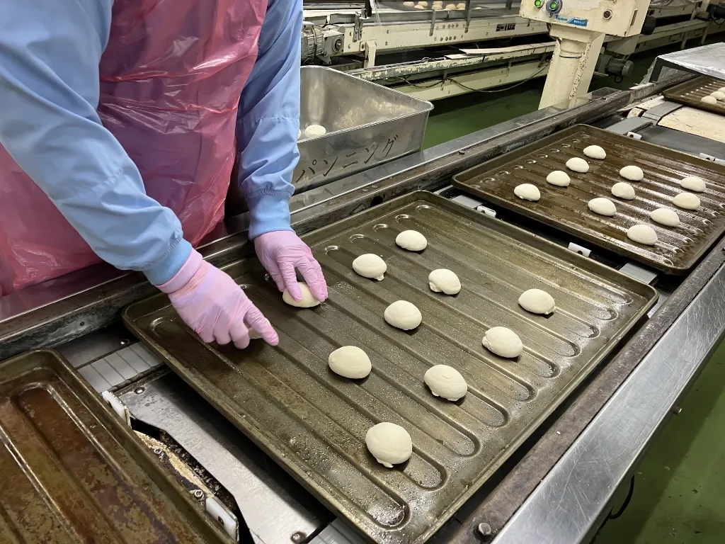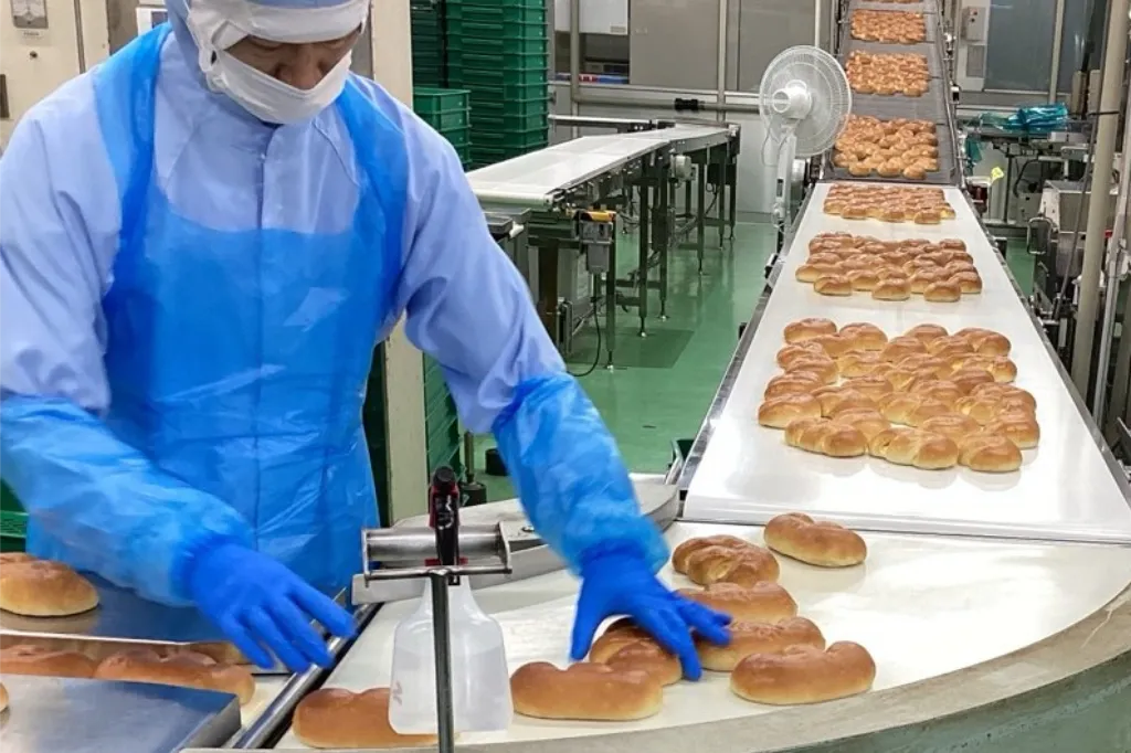焼成部門では、冷凍パン生地や洋菓子の焼成・トッピング・包装を担当し、24 時間 365 日稼働体制で主にコンビニエンスストア向けの商品を製造しています。品質にこだわり、焼き上がりや仕上げを丁寧に行い、安心・安全で美味しいパンを提供することで、お客様に喜ばれる商品づくりを目指しています。