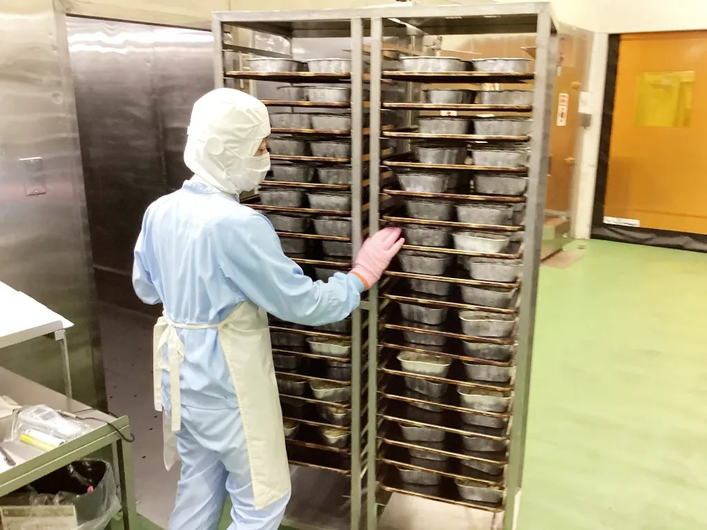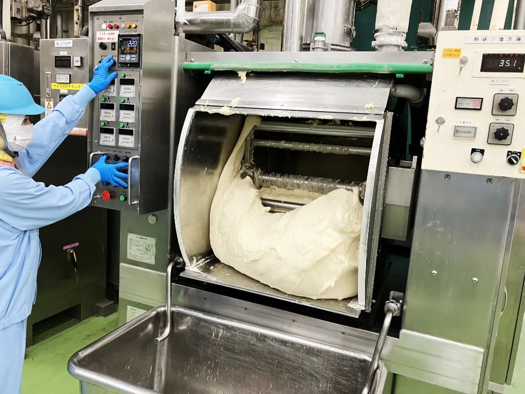 冷凍生地部門では、原材料の仕込みからパン生地の成型・凍結までを担当し、安心・安全で美味しいパンをお届けするため、計画的に冷凍生地を生産しています。24 時間稼働体制でお客様の幅広いニーズに応える品質を実現。徹底した衛生管理のもと、高品質なパンづくりを支える役割を担っています。