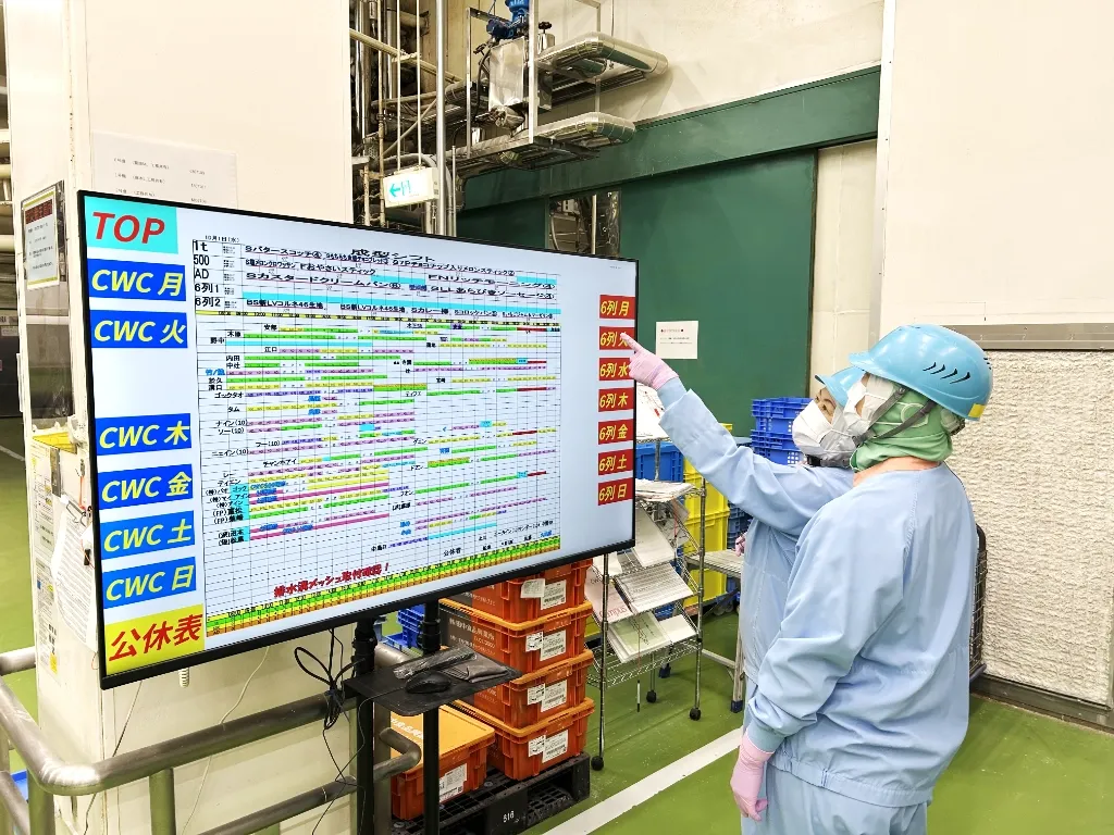 生産管理部門は、日々の生産計画の立案や受注表・伝票類の発行・管理をはじめ、冷凍生地の在庫管理や製品表示の作成等を多岐にわたる業務を担います。また、庶務業務を通じて、工場内のスムーズな運営・生産活動を支えています。