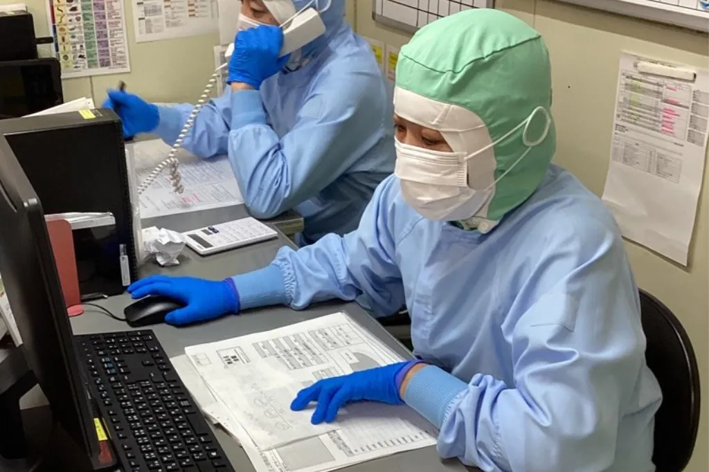生産管理課は、日々の生産計画の立案や受注表・伝票類の発行・管理をはじめ、冷凍生地の在庫管理や製品表示の作成等を多岐にわたる業務を担います。また、庶務業務を通じて、工場内のスムーズな運営・生産活動を支えています。