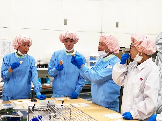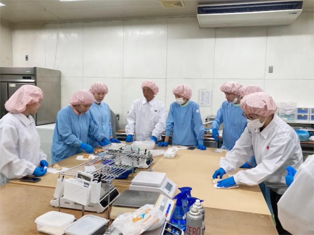 品質管理課は、安全・安心で高品質な商品を提供するため、商品の品質保証や工場内の衛生管理の教育・指導を行います。さらに、HACCP に基づく品質保証体制を整備し、製品の安全性を徹底的に追求。お客様に信頼される製品づくりを支える重要な役割を担っています。