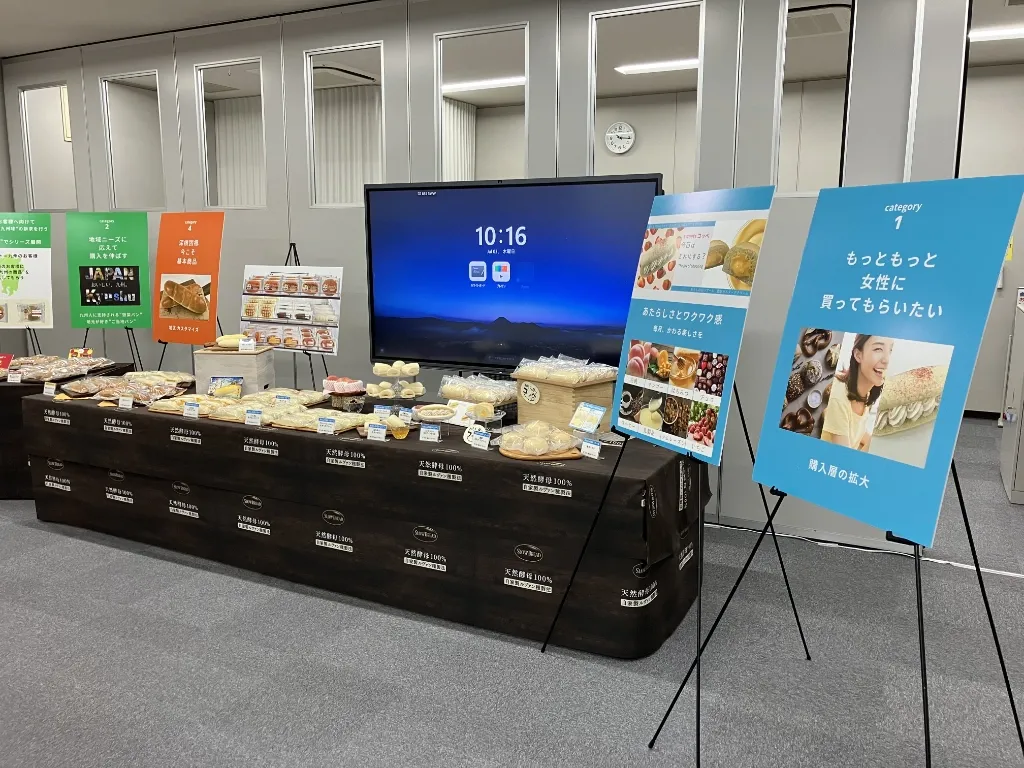コンビニには毎週新しい商品が店頭に並びます。商品が店頭に並ぶまでには、マーケティング調査からお客様のニーズを考え、新商品のコンセプトやアイデアを考え、そして、商品の試作・検討を重ね、商品化が決定します。商品化が決定すると実際に工場で量産できるように製造部門の方たちと量産準備を行い、ようやく商品が店頭に並びます。このように、お客様に商品を手に取ってもらうまでには長い道のりがかかりますが、美味しいと感動してもらえる商品をお客様に届けたいという想いから、日々、商品開発に取り組んでいます。